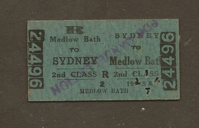 MEDLOW BATH - SYDNEY 1945 SYDNEY CITYRAIL GREEN ISSUE RAILWAY TICKET
