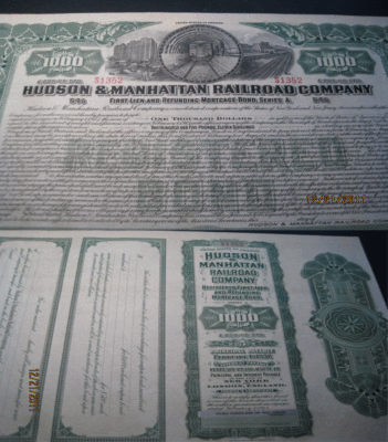 HUDSON & MANHATTAN RAILROAD COMPANY $1000 BOND 1957