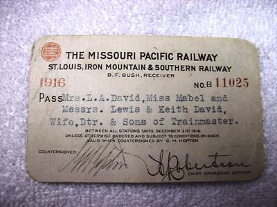 Vintage Railroad 1916 Missouri Pacific Railway Pass