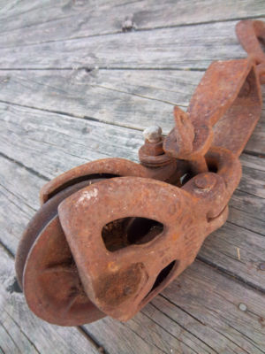 Title (ebay affiliate link): SKOOKUM A6 CAST IRON PULLEY American Primitive This one is HUGE and it's MARKED