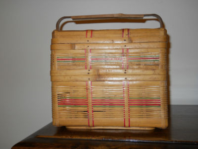 Title (ebay affiliate link): Vintage Stackable Sewing Basket Thread Bobbins needles Scissors Collectible