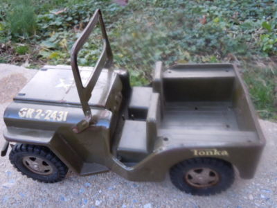 Title (ebay affiliate link): OLD TIN TOY TONKA GREEN JEEP / FOLD DOWN WINDSHIELD