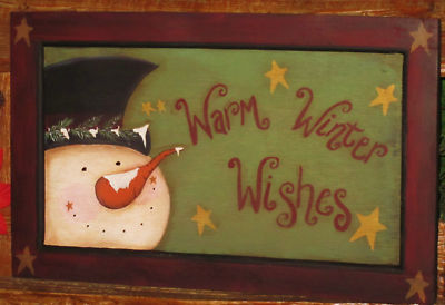 Title (ebay affiliate link): *~*PRIMITIVE*~* HP FOLK ART SNOWMEN ~ WARM WINTER WISHES ~ DOOR PANEL