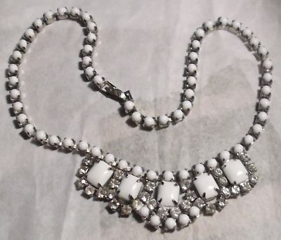 Title (ebay affiliate link): VINTAGE MILK GLASS AND RHINESTONE NECKLACE COSTUME JEWELRY