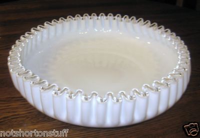 Title (ebay affiliate link): Fenton Silver Crest Milk Glass Large Bowl with crimped clear edges