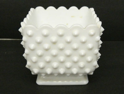 Title (ebay affiliate link): FENTON MILK DEPRESSION GLASS HOBNAIL SCALLOPED EDGE 4" SQUARE PLANTER