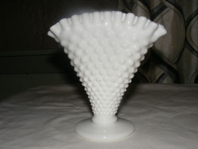 FENTON WHITE MILK GLASS HOBNAIL SMALL FAN VASE VINTAGE
