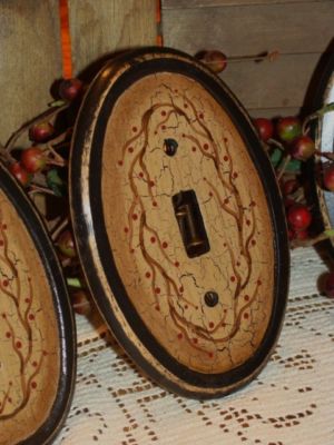 Title (ebay affiliate link): Folk Art Primitive Black With Tan Crackle & Pip Berries Wood Light Switch Cover