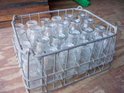 Title (ebay affiliate link): Antique milk bottles and original wire crate / wire carrier 24 1/2 pint bottles