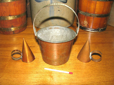 Title (ebay affiliate link): ANTIQUE COPPER MATCH STICK HOLDER & 2 COPPER CANDLE SNUFFERS