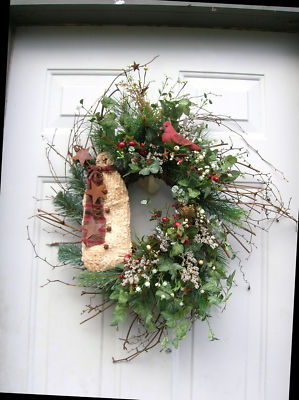 Title (ebay affiliate link): Country Winter Primitive Snowman Door Wreath Arrangement