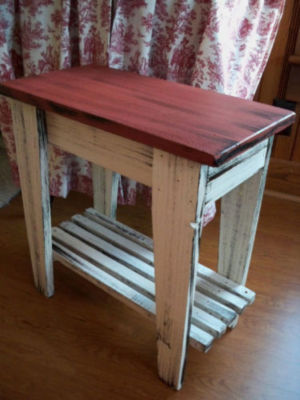 Title (ebay affiliate link): Aged Red Primitive Wooden Side Table with Lower Shelf-***ONE DAY SALE***