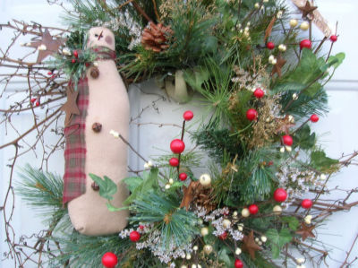 Title (ebay affiliate link): COUNTRY,RUSTIC PRIMITIVE WINTER SNOWMAN DOOR WREATH ARRANGEMENT