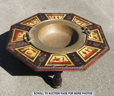 Title (ebay affiliate link): Antique Moroccan Wood Inlay Table With Inset Brass Bowl