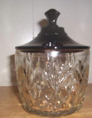 BEAUTIFUL OLD SUGAR BOWL WITH RUBY RED TOP