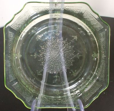 Elegant Green Depression Glass Square Plate w/ Beautiful Design