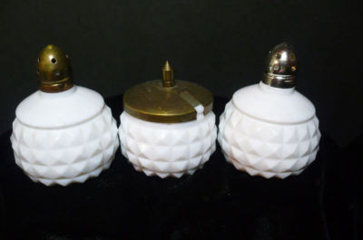 DEPRESSION MILK GLASS SMALL SALT PEPPER MUSTARD POT DIAMOND BLOCK