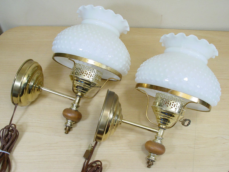2 VINTAGE MILK GLASS OIL LAMP STYLE WALL SCONCE LAMPS
