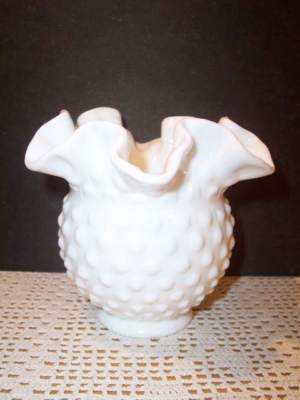 FENTON MILK GLASS HOBNAIL FLUTED VASE - LQQK!