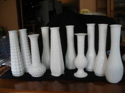 MILK GLASS VASES 8 EO BRODY 3 HOOSIER GLASS,