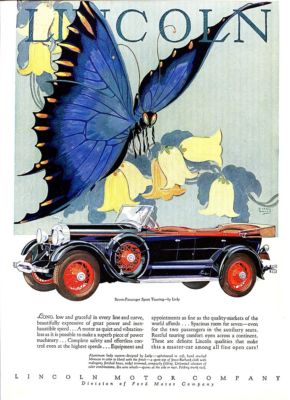 Title (ebay affiliate link): 1928 LINCOLN 7-Psngr LOCKE Sport Touring COLOR AD. Exotic Butterfly.Stark DAVIS