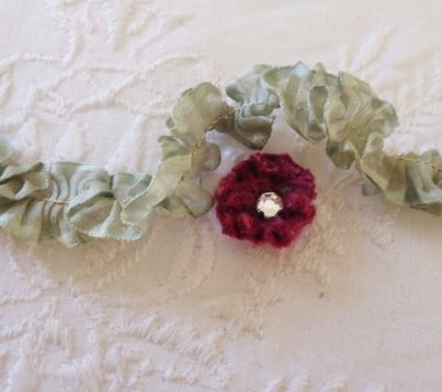 Title (ebay affiliate link): EDWARDIAN RUCHED SILK RIBBON & TINY SILK VELVET FLOWER "DOLLS"