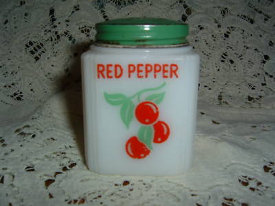 TIPP CITY MILK GLASS SHAKER RED PEPPER CHERRIES
