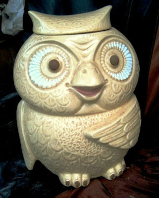 Title (ebay affiliate link): Beautiful Vintage Mid-Century McCOY Wise Old OWL COOKIE JAR!!! RARE COLOR