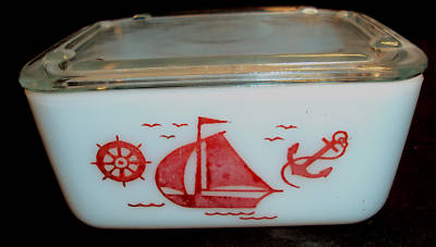 Title (ebay affiliate link): McKEE DEPRESSION GLASS RED SAILBOAT REFRIGERATOR DISH