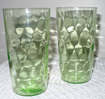 Set of Two 12 Ounce Green Depression Glass Tumblers