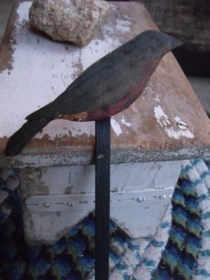 Title (ebay affiliate link): Sweet Rustic Primitive Hand Made & Painted Wood Folk Art Bird on Stick