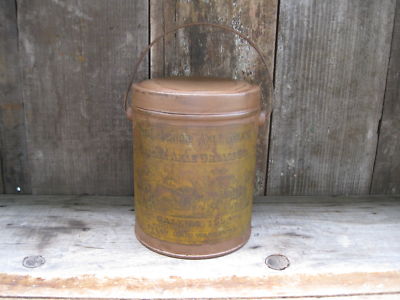 Title (ebay affiliate link): Antique Galena Illinois Tin Pail w Paper Label Chocolate Brown Milk Paint