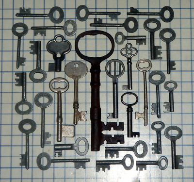 Antique Vintage old skeleton key lot furniture cabinet barrel padlock lock craft