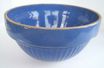 Title (ebay affiliate link): Antique Stoneware Mixing Bowl Beautiful! Large! Blue!