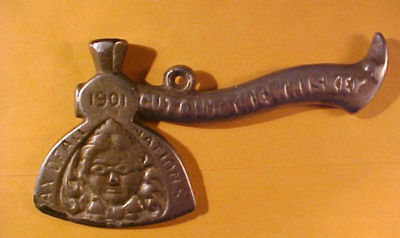 1901 CARRIE NATION HATCHET TEMPERANCE AX Beer Whiskey Prohibition AA Advertising