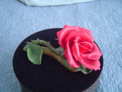 CAPODIMONTE RED ROSE, THORNS FIGURINE ITALY-PRETTY!!