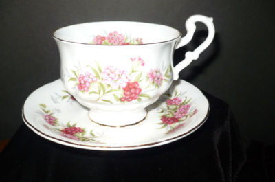 C250- PARAGON ENGLAND CUP SAUCER CRANBERRY PINK PHLOX FLOWERS
