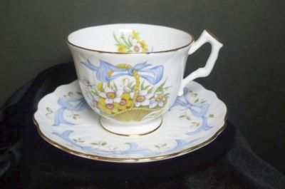 Title (ebay affiliate link): C253- AYNSLEY ENGLAND CUP SAUCER CINDERELLA BLUE RIBBON BOWS MARCH NARCISSUS