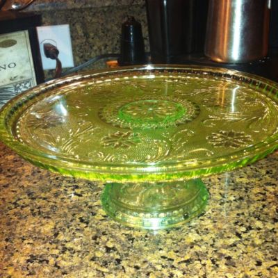 GENUINE ANTIQUE C1920'S-1930'S WHITE DEPRESSION GLASS CAKE STAND