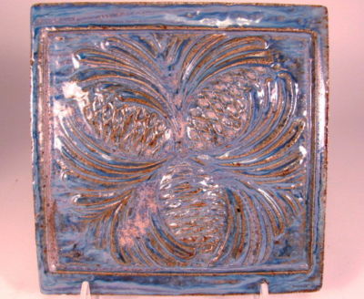 Arts & Crafts Blue Glazed Tile Pine Cones