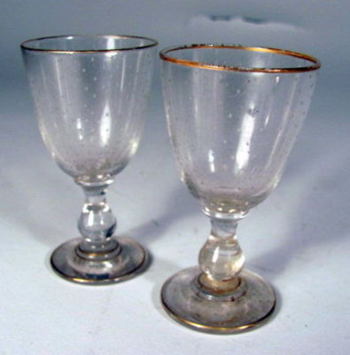 Pair Antique Early Etched Blown Flint Glass Cordial Stems
