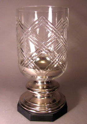 ~HUGE Over Sized Cut Crystal Silver Plated Candle Holder