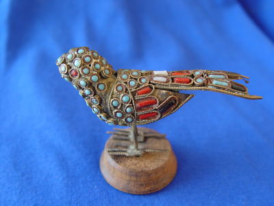 Title (ebay affiliate link): ANTIQUE BRASS BIRD ON STAND EMBELLISHED WITH TURQUOISE CORAL ONYX STONES AS IS