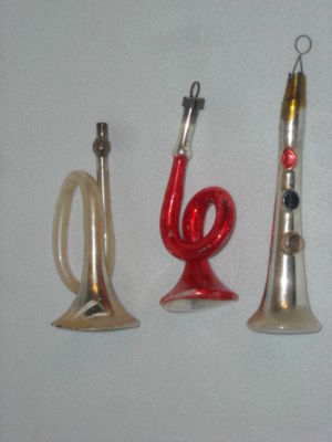 Title (ebay affiliate link): 3 Antique Mercury Glass Christmas Ornaments TWO French Horns & ONE Flute-NICE!