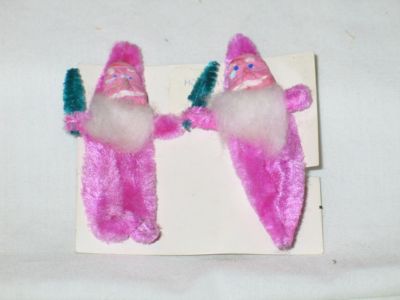 Title (ebay affiliate link): Vintage Christmas Pink Chenille Composition Santa Clip On Earrings MOC T7