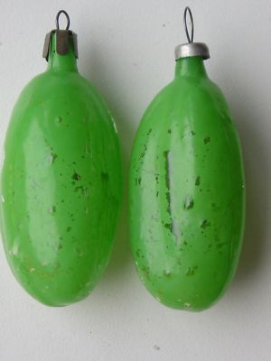 Vintage Christmas Transparent glass ornaments "2 Pickles"