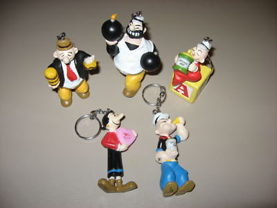 Title (ebay affiliate link): SET OF FIVE (5) VINTAGE 3" POPEYE CHARACTER KEYCHAINS - 1989