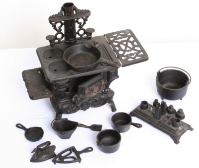 Title (ebay affiliate link): Antique Crescent Cast Iron Kitchen Stove and Accessories. Very Cool!