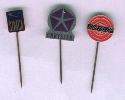 3x lapel pins SIMCA CHRYSLER very old 60-s