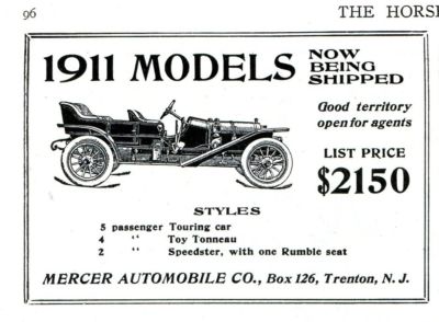 Title (ebay affiliate link): 1911 MERCER Motor CAR AD. Three Models for 1911. Priced at $2150. Trenton, NJ